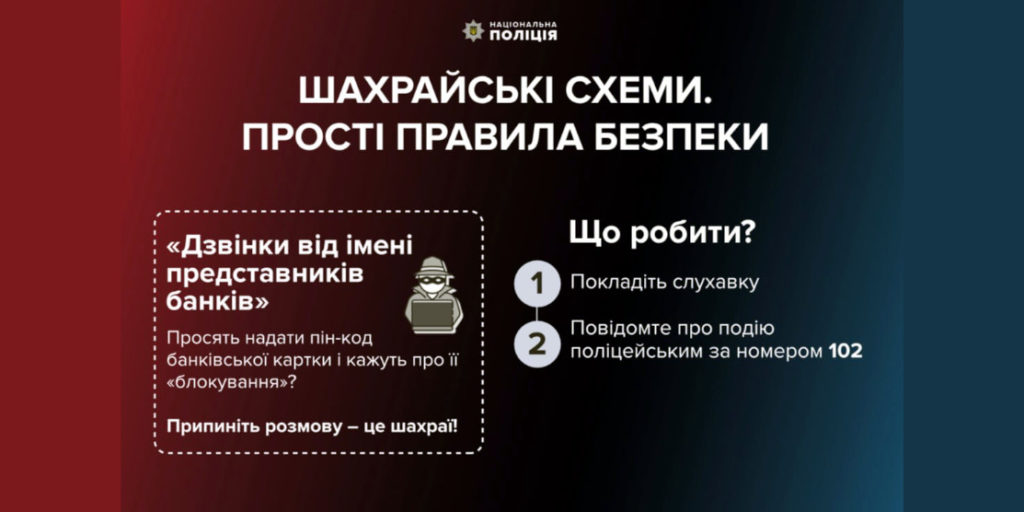 Правоохоронці наголошують: якщо вам телефонують із питаннями стосовно ваших банківських рахунків, у жодному разі нікому не повідомляйте конфіденційні дані банківських карток.