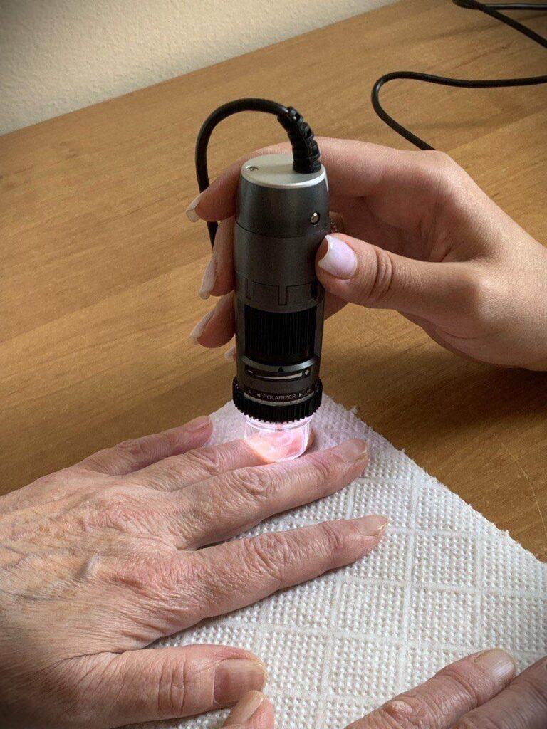 Процедура виконується за допомогою спеціального капіляроскопа, який дає можливість оцінити стан капілярів – їхню форму, розмір, щільність та рівномірність розташування. Обстеження особливо важливе для пацієнтів із синдромом Рейно, системною склеродермією та низкою інших захворювань.
