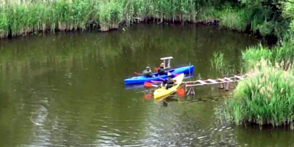 Фото: окупанти втікають від затоплення на вкрадених у місцевого населення байдарках на окупованій частині Херсонщини (фото із соцмереж).