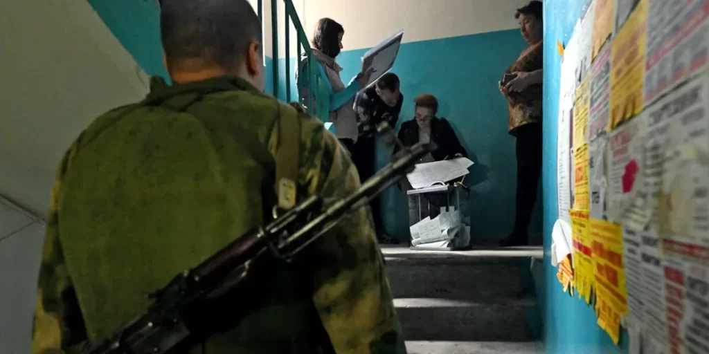 В межах нього, колаборанти з фейковим “виборчих комісій” у супроводі російських автоматників обходять будинки й проводять “голосування за місцем проживання”. Раніше така процедура почалась на тимчасово окупованих територіях Запоріжжя та Донецької області.
