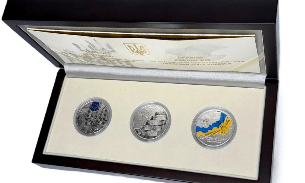 Українська державність отримала ще одне матеріальне втілення в музейному просторі. До фондів передали набір із трьох срібних пам’ятних монет, присвячених Гербу, Прапору та Гімну України — символам, які формують національну ідентичність і об’єднують суспільство в часи випробувань.