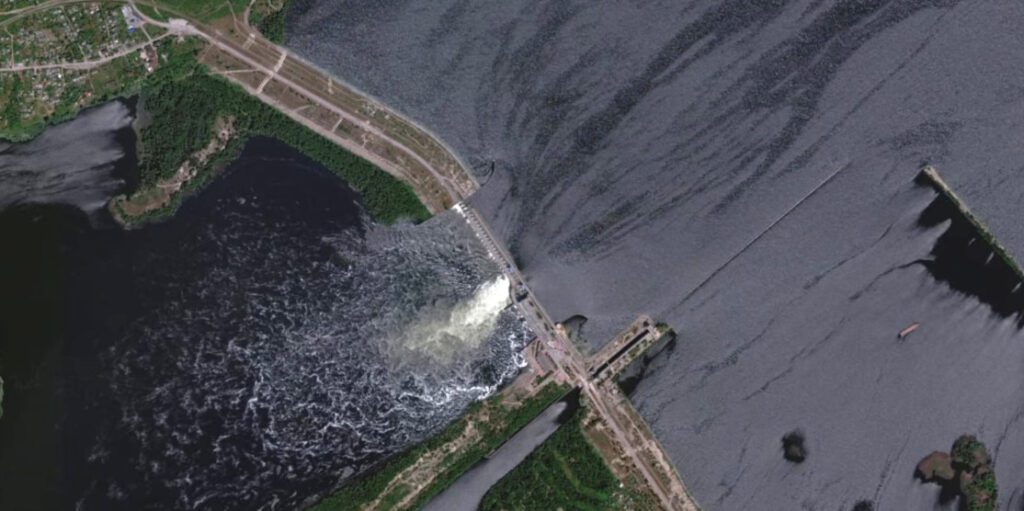 Фото: підірвана Каховська ГЕС із супутника MAXAR.