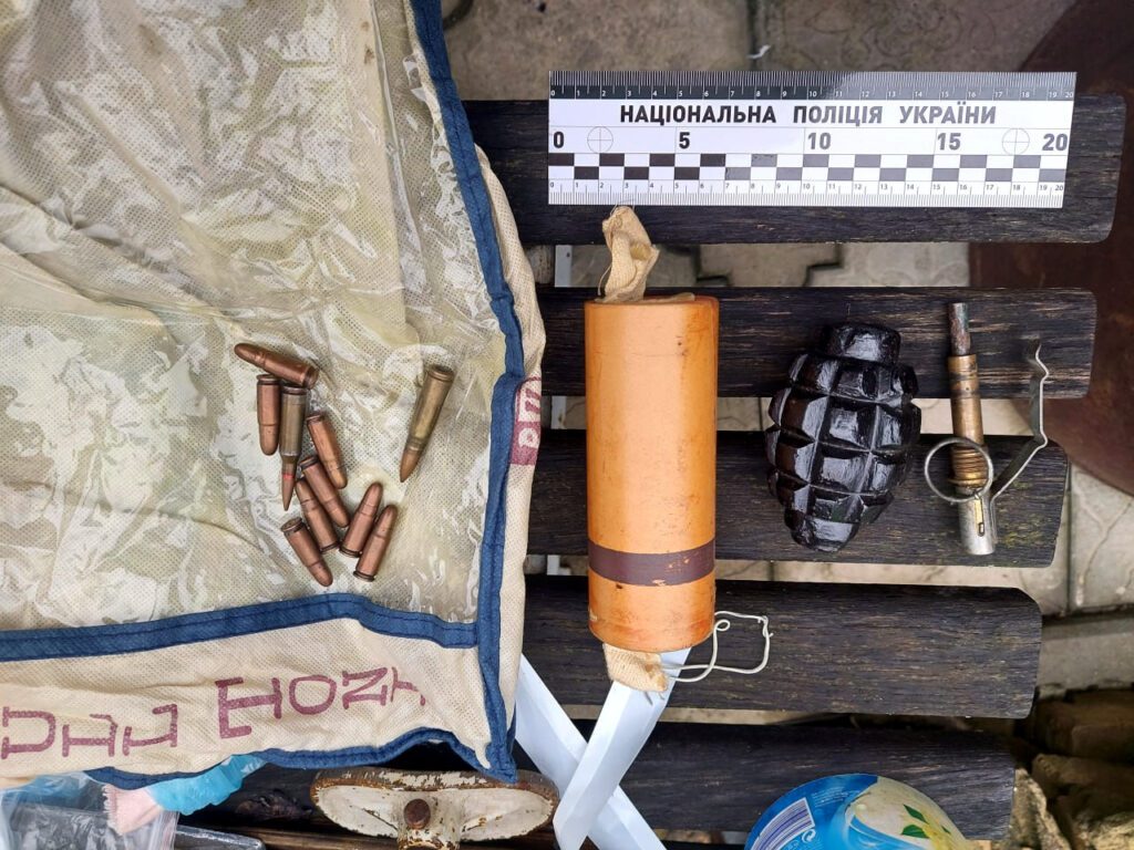 На підставі ухвали суду за місцем його проживання слідчі з оперативниками виявили та вилучили кристалічну речовину та речовину рослинного походження, схожі на наркотичні, пристрій для куріння, дві гранати: димову та типу Ф1, запал та патрони різного калібру, пістолет у розібраному вигляді.