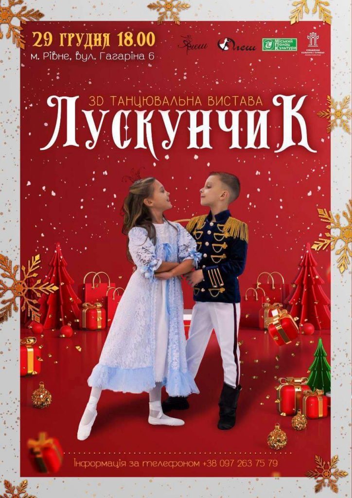 Казкове диво, яке відбувається у дитячому віці, про те, як чарівник перетворив принца у загадкову іграшку Лускунчика.Кожен з нас в дитинстві вірив, що ляльки оживають, а посеред ночі під дзвін магічного годинника прокидаються велетенські миші, які насторожують своєю потворністю.Тут сніжинки танцюють, наче метелики.