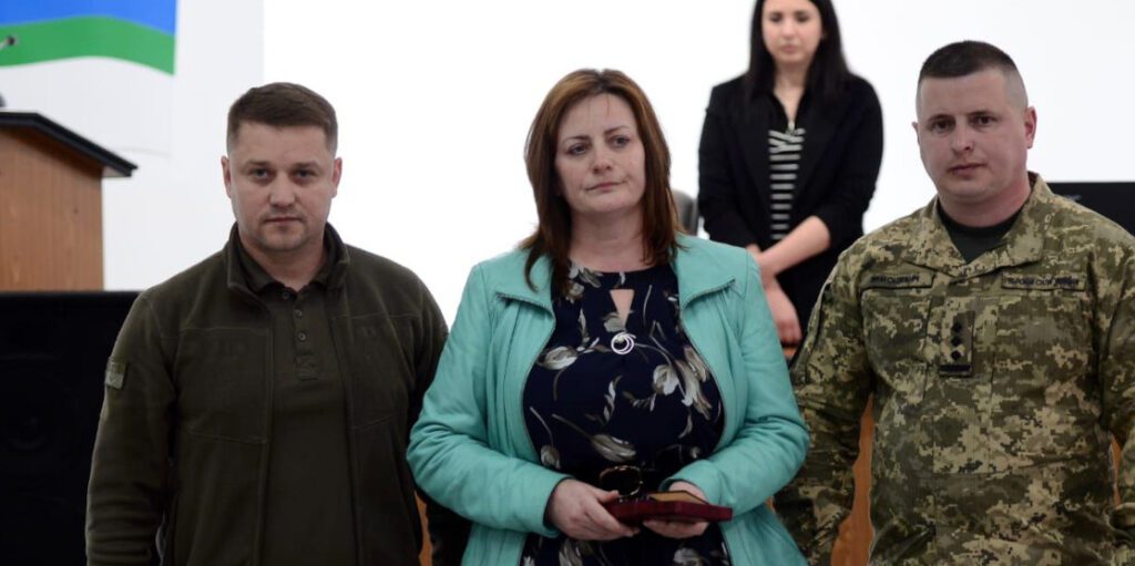 Орден “За мужність” III ступеня вручено дружині загиблого Романа Калащука — Наталії Калащук.