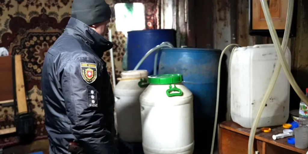 Чоловік виготовляв на основі фальсифікованого спирту алкогольну продукцію під виглядом коньяку, настоянки, горілки, яку розливав у п’ятилітрові пластикові ємності.