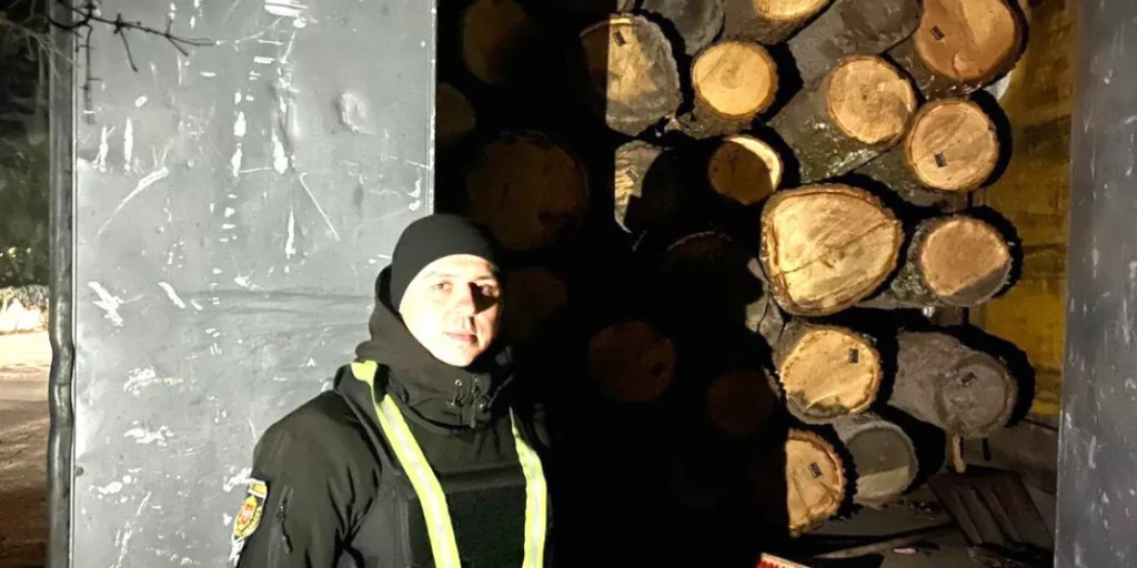 Під час перевірки з’ясувалося, що житель села Борове перевозив колоди дуба загальним об’ємом близько 18 кубометрів.