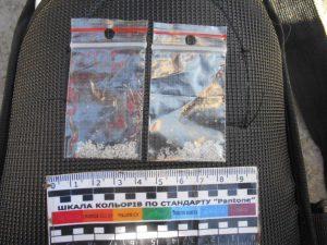 – два поліетиленові пакетики з кристалічною речовиною білого кольору схожою на наркотичні засоби.