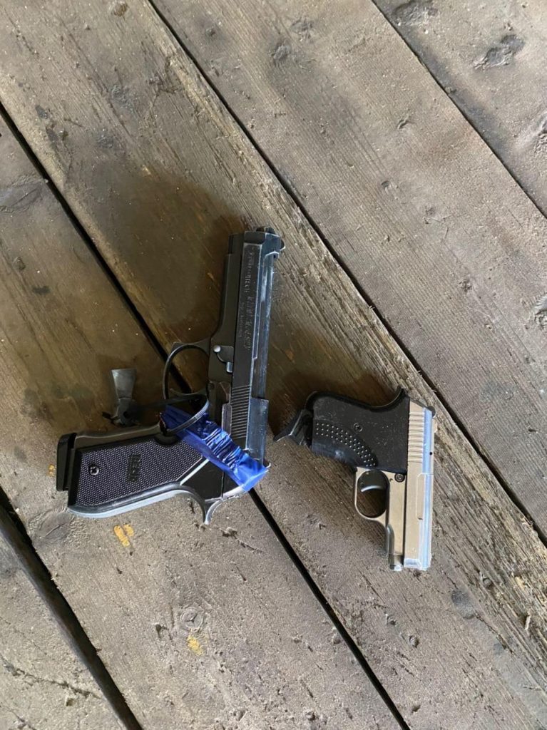 – три пістолети, один з яких з магазином, спорядженим 12 патронами, схожими на бойові;