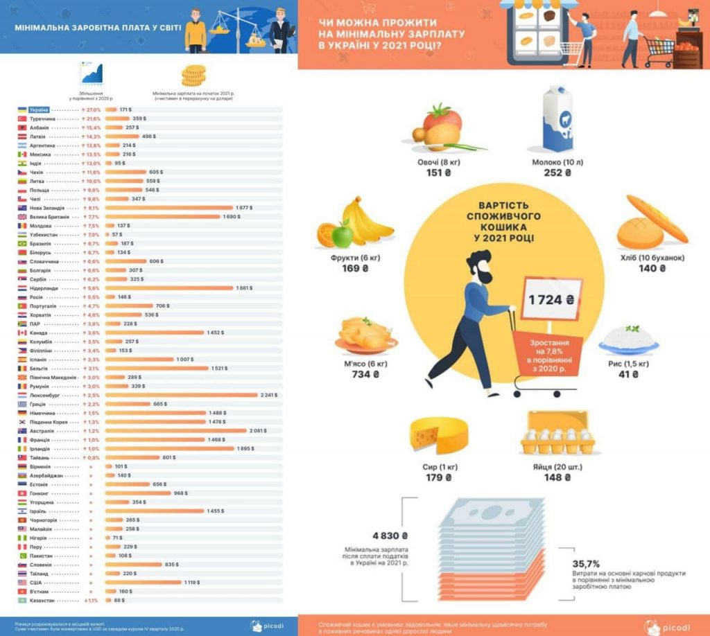 Протягом минулого року реальна мінімальна зарплата в Україні збільшилася на 27% (з 3 802 гривень до 4 830), що забезпечило країні перше місце в рейтингу з 56 країн.