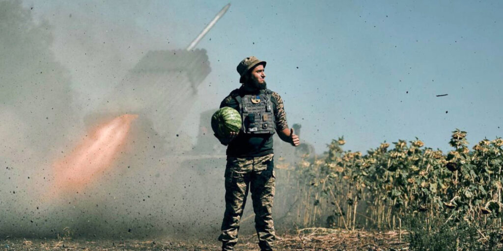 Ця світлина українського захисника із кавуном на тлі пострілу артилерії облетіла чи не увесь світ.