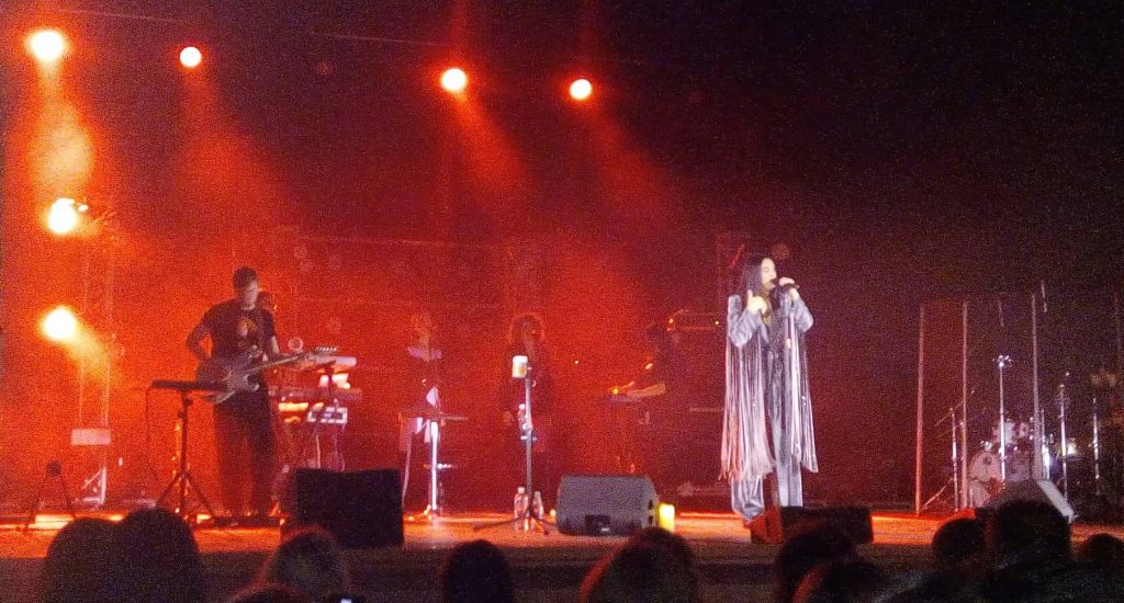 Майже у повній темряві стояли глядачі і аплодували. Час від часу у залі звучало «браво» та «біс». В якийсь момент здалося, що артисти вже не вийдуть на сцену. Та спочатку з’явився гітарист, потім вийшов до своєї ударної установки барабанщик і, на радість всього залу, – Джамала. Так, Джамала виступила з концертом у Рівному і полонила їхні серця…