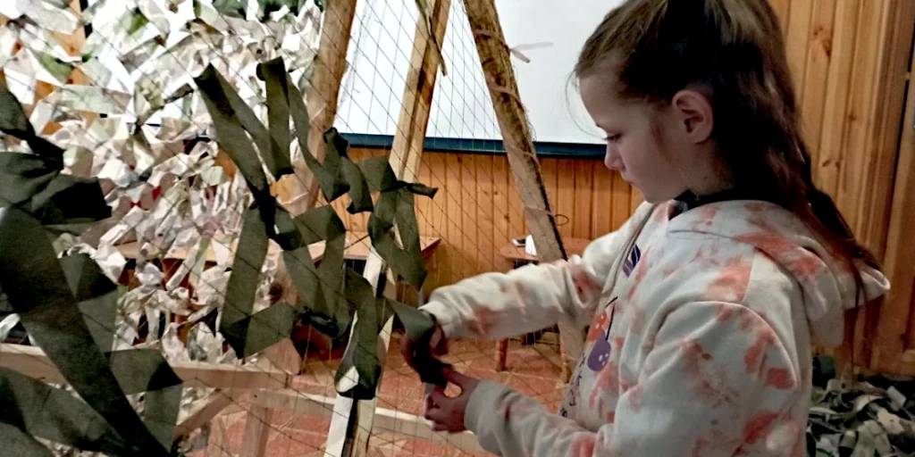 Як розповіла директорка спецшколи Ольга Ладюк, виготовлення маскувальних сіток – це ще одна допомога, яку тут здійснюють постійно. Щоб навчитися робити їх правильно та якісно, запросили волонтерів. Сьогодні кілька готових сіток уже захищають техніку та життя наших військових на позиціях.