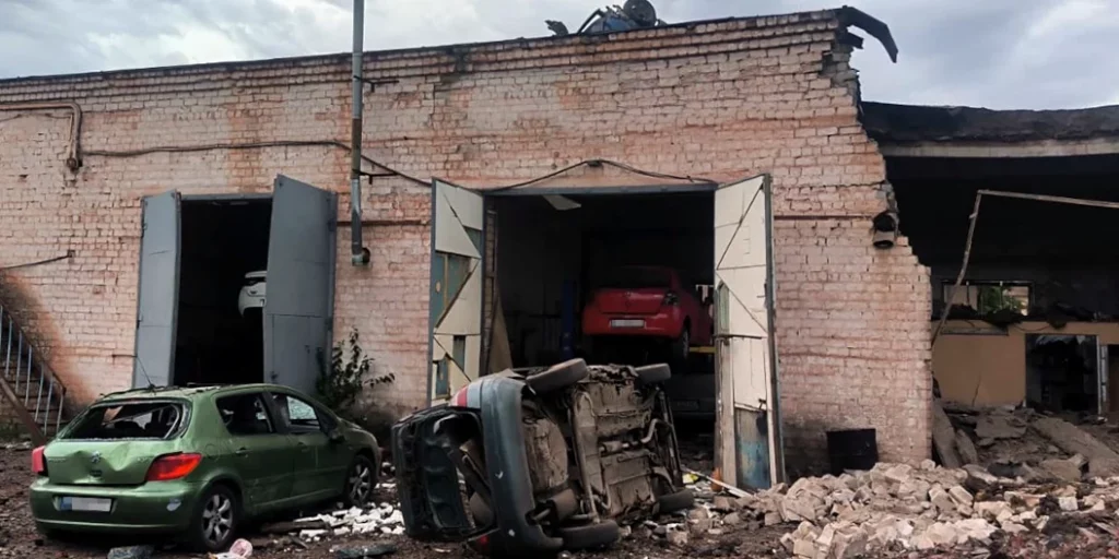 Внаслідок обстрілу пошкоджено бокси для ремонту автомобілів та транспортні засоби. Рятувальники проводять обстеження території.