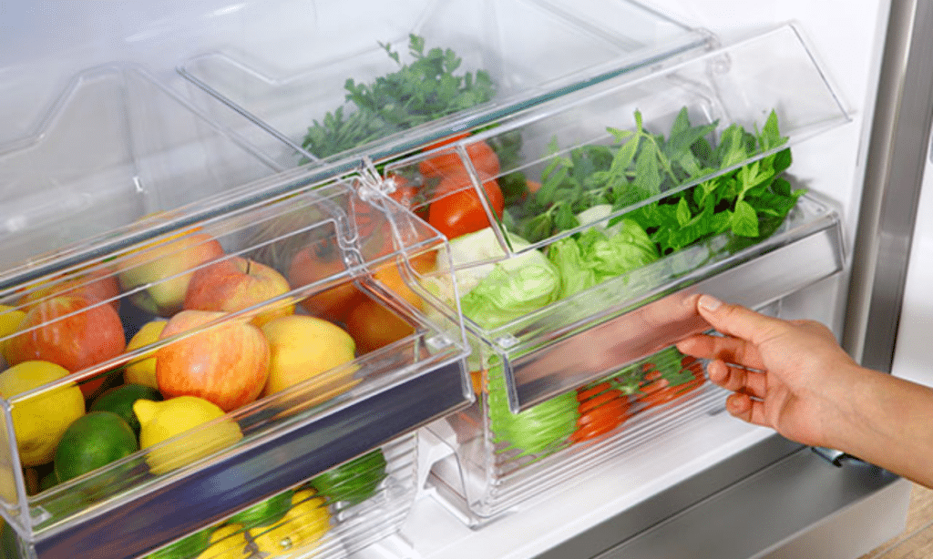 У шухлядах із високою вологістю краще зберігати зелень і овочі, які швидко в’януть: листя салату, броколі, моркву, селеру. Низька вологість підходить для фруктів і овочів, що виділяють етилен — яблук, груш, авокадо, персиків, слив і ягід.