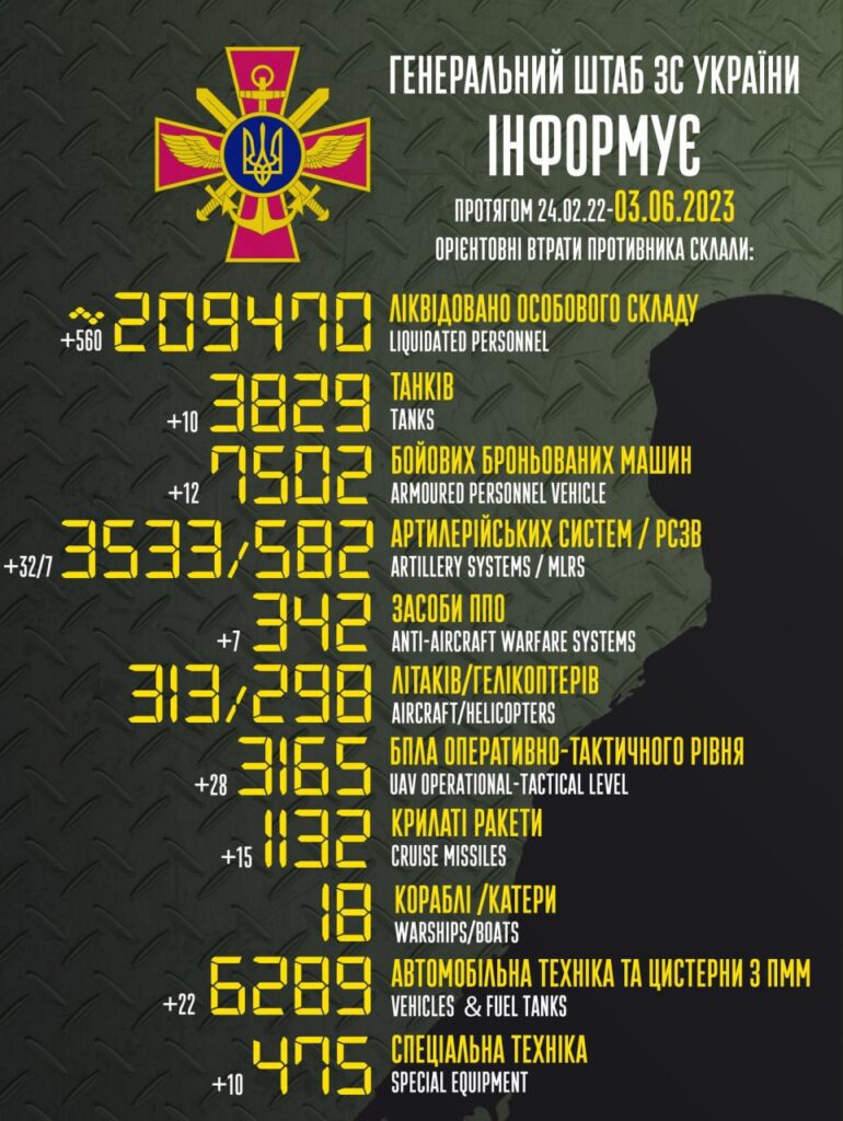 Минулої доби ворог завдав 67 авіаційних та 17 ракетних ударів, здійснив 91 обстріл із реактивних систем залпового вогню. Ймовірність завдання ракетних та авіаційних ударів по всій території України і надалі залишається високою.