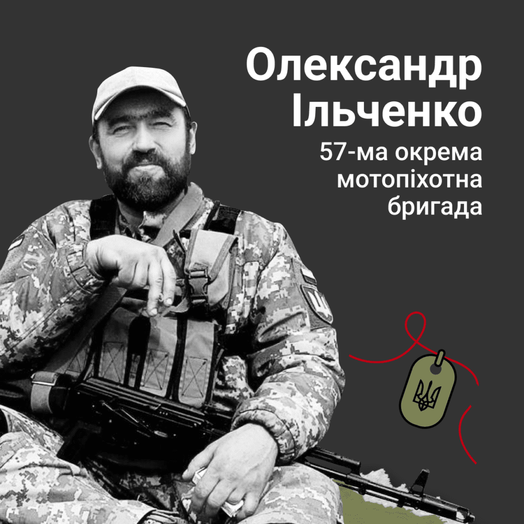 Бойовий медик Олександр Ільченко, позивний Охотнік, загинув 11 травня 2022 року під час виконання бойового завдання біля селища Тошківка на Луганщині. Захисник зазнав мінно-вибухової травми та вогнепального осколкового поранення внаслідок ворожого артилерійського обстрілу. Йому було 47 років.