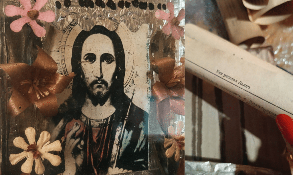 А сторінкам із книги про Леніна, жартує Ірина, таки пощастило. Замість пилюки забуття вони стали опорою для ікони – і мовчазним свідченням того, що навіть у найжорсткіші часи святе знаходило спосіб вижити.