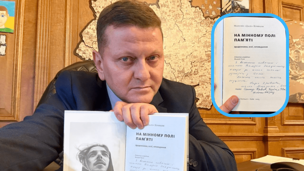 Максим Кривцов (Далі) мріяв щоб його збірка віршів потрапила до рук Валерія Залужного. На жаль Максим загинув у січні 2024 року захищаючи Україну.