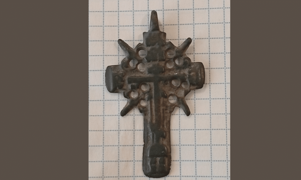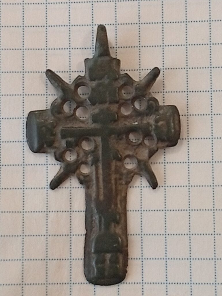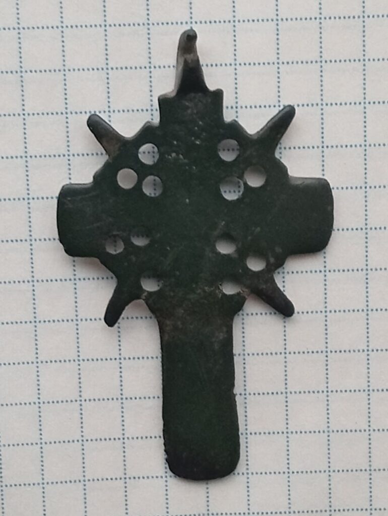 Знахідка виготовлена з бронзи методом лиття. У хресті – 12 отворів, а точних аналогів йому не існує, що робить артефакт особливо цінним. Орієнтовний час створення – кінець XVIII століття, близько 1790-х років, період правління останнього короля Речі Посполитої Станіслава Августа Понятовського.