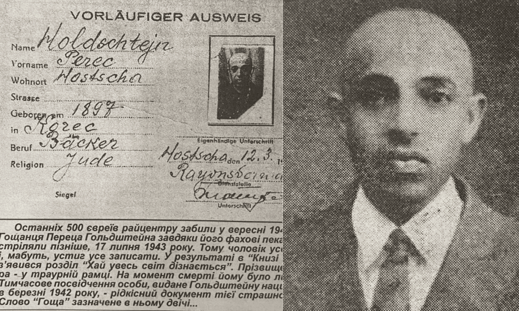 У справі написано також, що Гольдштейн, ідентифікаційний номер якого 10018784, пережив шоа (голокост). Інформація базується на відомостях Бригіди Кафар, котрі вона надала 29 жовтня 1946 р. Жінка тоді ще не знала, що Переца забили через місяць після її втечі з Глибочка…