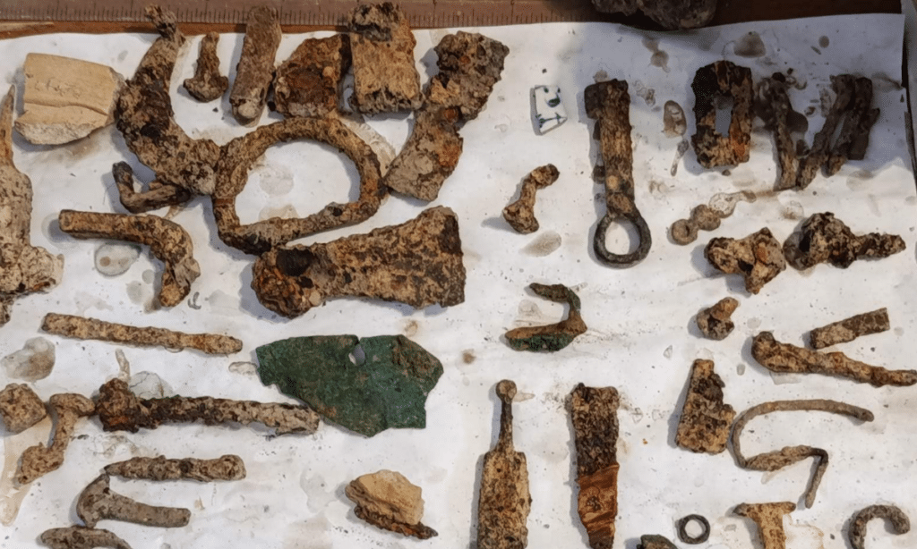 Окрім кераміки, археологи виявили значну кількість металевих виробів: цвяхи, елементи кріплення, підківки до чобіт, уламки ножів, а також близько десяти фрагментів голок і шил.