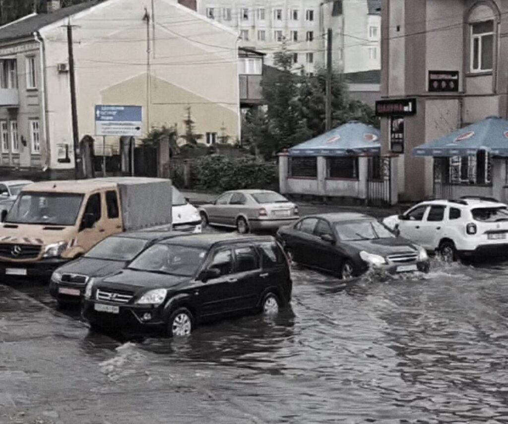 Під час сильних дощів центр Рівного не раз підтоплювало через перевантажену або застарілу систему водовідведення. Вода накопичувалася на дорогах і пішохідних зонах, ускладнюючи рух транспорту та пересування людей.