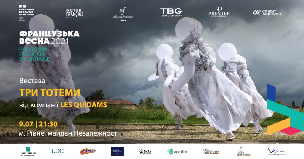 Рівне ще такого не бачило! В рамках фестивалю «Французька весна» Альянс Франсез міста Рівне запрошує на неймовірну вуличну виставу «Три Тотеми» від французької компанії «Les Quidams» за підтримки Посольства Франції в Україні, Французького інституту в Україні та Рівненської міської ради.