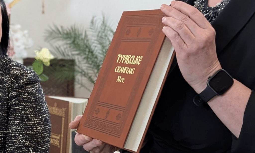 У Дубенському замку на Рівненщині презентували факсимільну копію Турівського Євангелія — унікальної пам’ятки староукраїнської писемності XI століття.