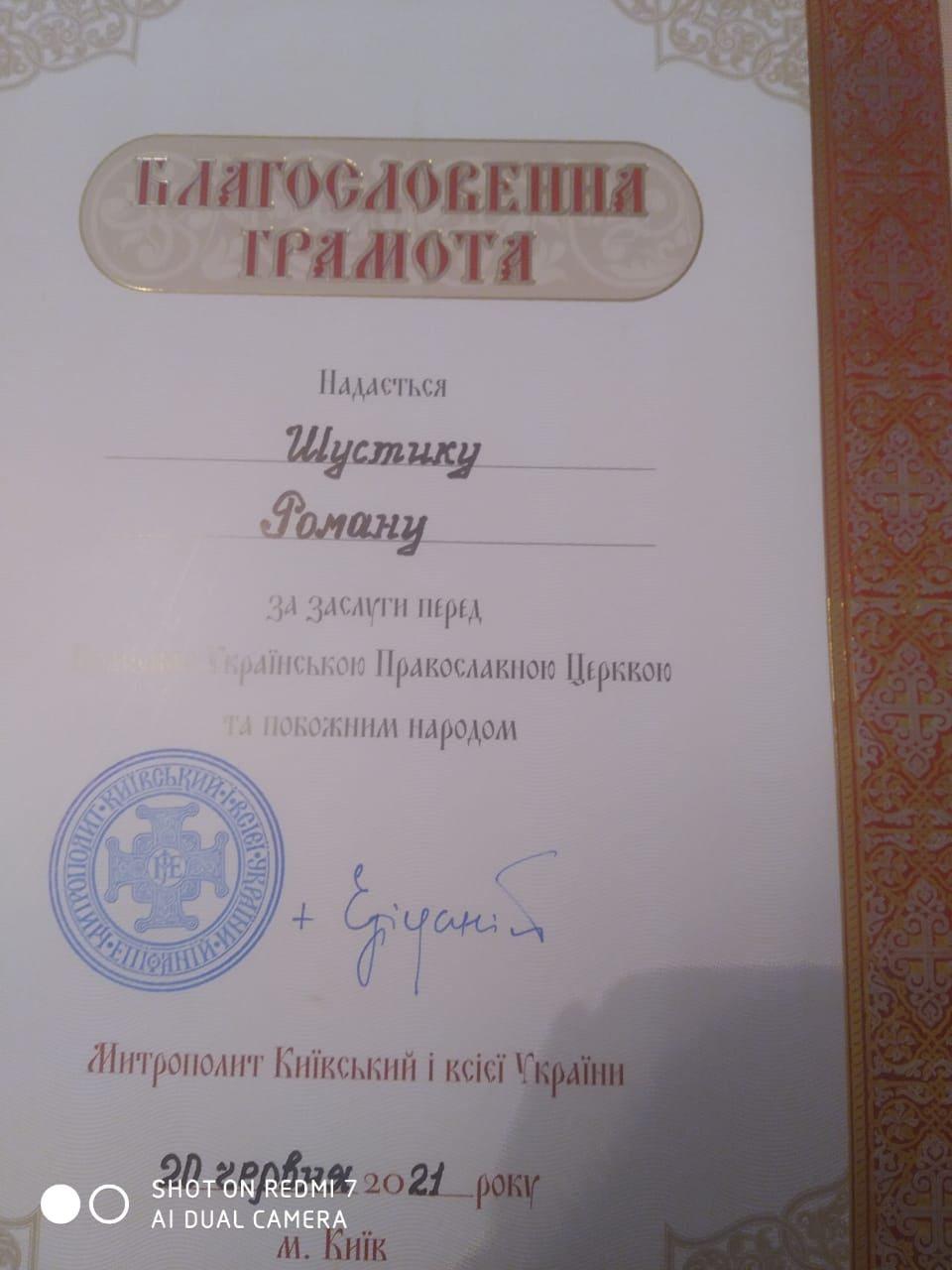Дякую Православна Церква України та Митрополит Епіфаній за високу честь та поважну відзнаку.