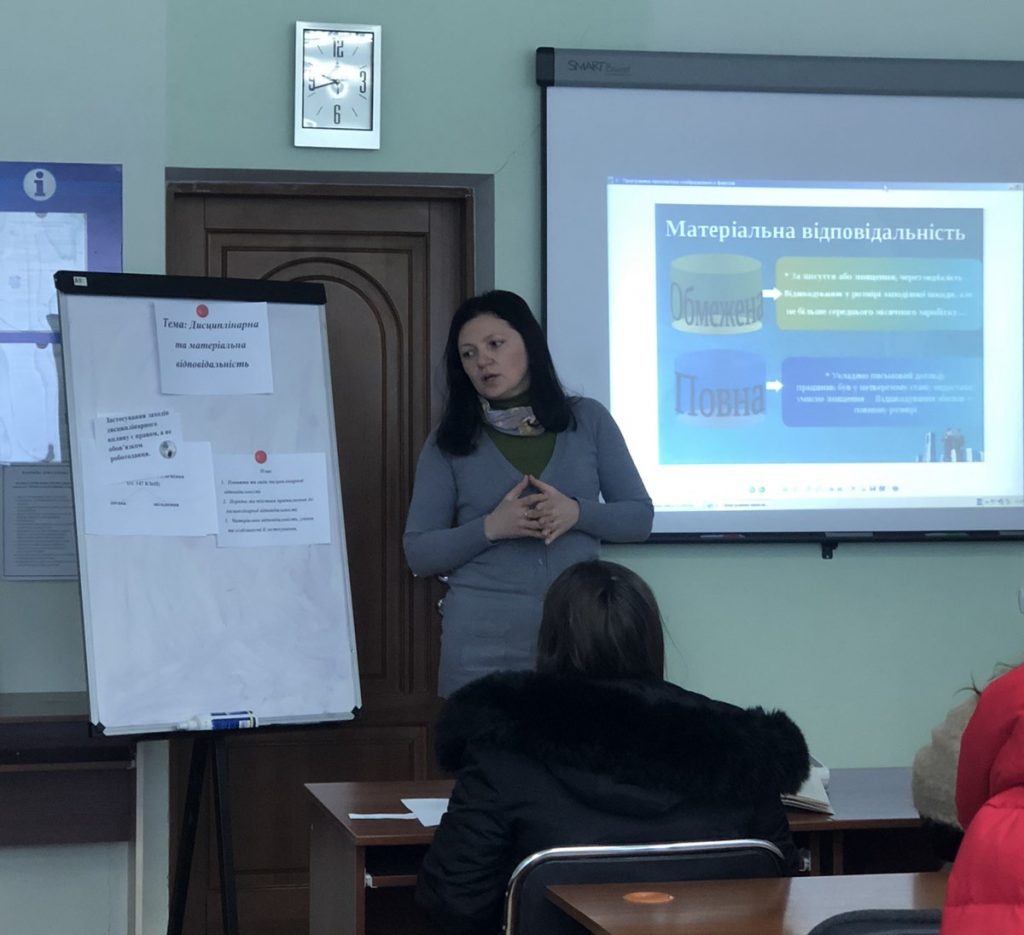 Відкритий урок викладачки Рівненського центру ПТО ДСЗ Тетяни Кислюк був присвячений дисциплінарній та матеріальній відповідальності.