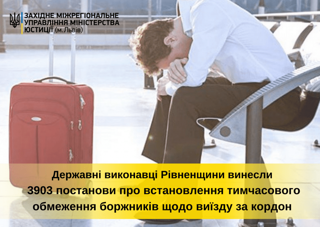 Державними виконавцями винесено 3903 постанови про встановлення тимчасового обмеження боржників щодо виїзду за кордон. Зокрема, безпосередньо по м.Рівне винесено 411 таких постанов.