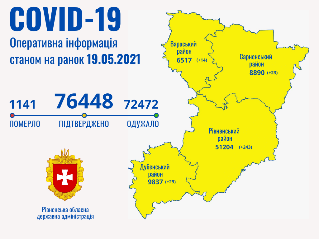 Таким чином в Рівненській області наразі маємо 76 448 випадків захворювання на коронавірусну хворобу.