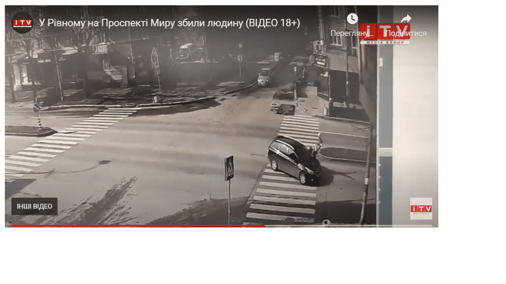 Відділ комунікації поліції Рівненської області повідомив, що слідчий Рівненського районного управління поліції встановив, що 34-річний водій автомобіля «Kia Ceed», житель обласного центру, здійснюючи маневр повороту ліворуч із вулиці Шевченка на проспект Миру, допустив наїзд на жінку-пішохода, яка перетинала проїзну частину дороги по нерегульованому пішохідному переході.