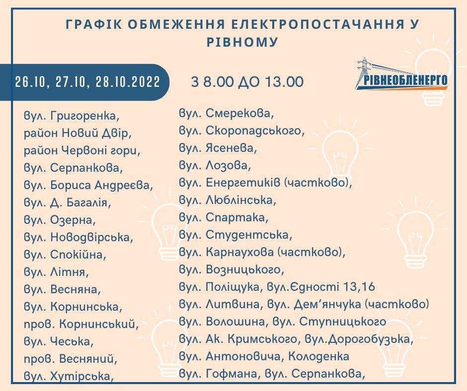 Де у Рівному не буде світла в першій половині дня 26 жовтня читайте тут.