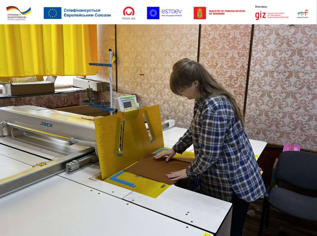 Швачка ТОВ «РВК «Алексія» Олена Лопух – одна із безпосередніх учасниць проєкту. Вона три роки працює на цьому підприємстві. Беручи участь у цьому проєкті, Оленаопанувала технічно складну компетентність – роботу на комп’ютеризованій швейній машині для обробки деталей по контуру з пристроєм лазерної обрізки.