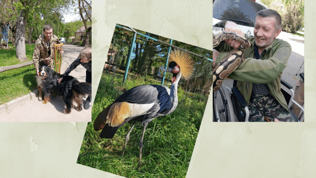 «Я в цивільному житті за освітою педагог, – приєднується до розмови військовослужбовець Дмитро Записяк. – У школі на Івано-Франківщині 28 років викладав зарубіжну літературу та християнську етику. Під час повномасштабного вторгнення служив в окремій штурмовій бригаді «Едельвейс». На війні втратив ногу. Після ампутації виникають фантомні болі. Але коли з нами працюють психологи, проводяться цікаві заходи, як от поїздка в зоопарк – відволікаєшся від тяжких думок, від болю. Це додає енергії, сили».