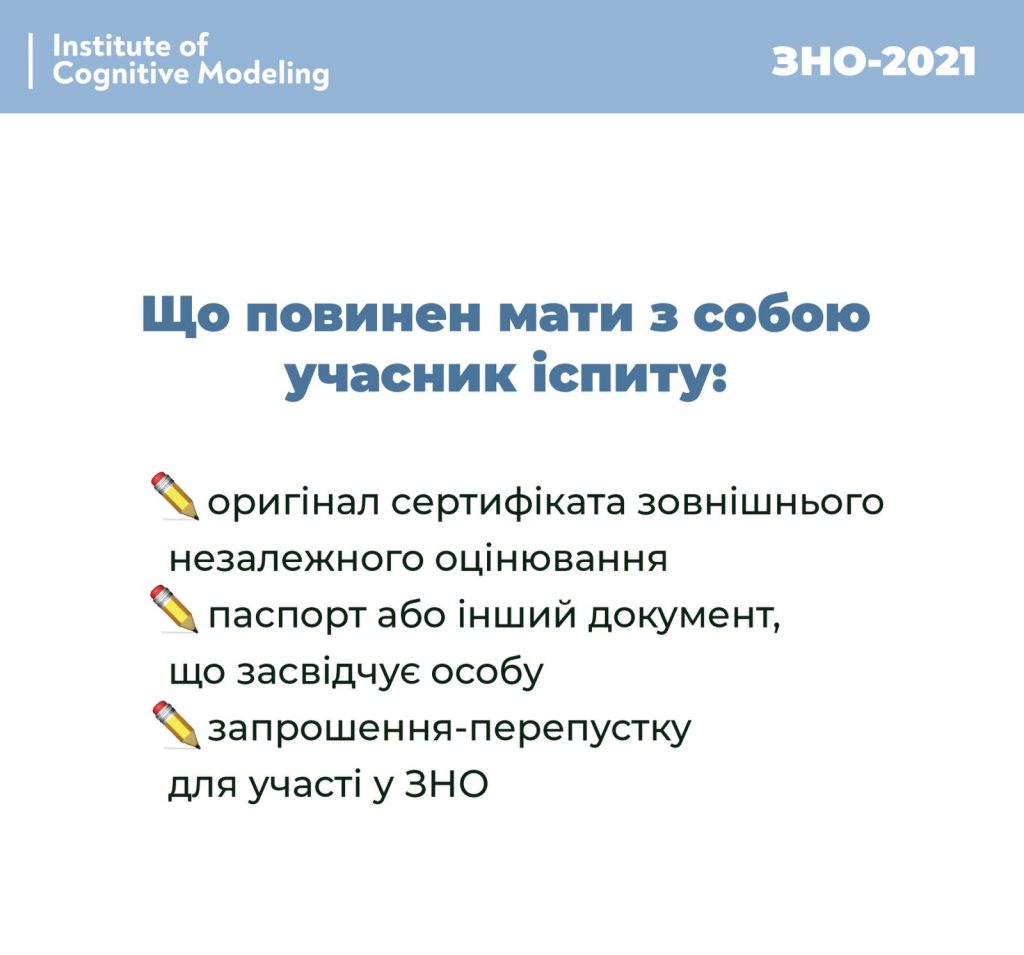Бажаємо удачі випускникам та радимо не забувати усі необхідні документи, які зазначені на картинці.