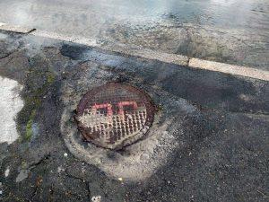 Сьогодні, 3 липня, у Рівному на вулиці Дорошенка біля Парку пам’яті жертвам війни з каналізаційного колодязя тече вода.
