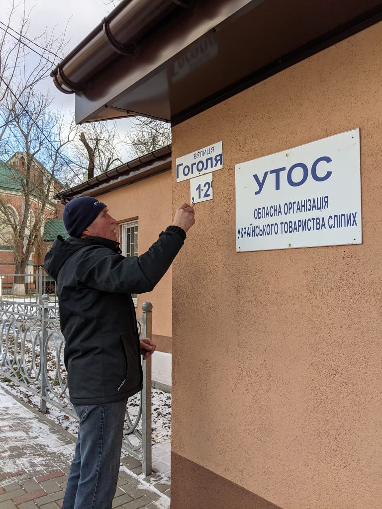 “Вчорашній буревій зірвав утосівську вивіску. Та вже сьогодні вивіска на місці. Майстер на всі руки, а саме таким знають Петра Ташліцького у Рівненській обласній організації УТОС, одразу прийшов на допомогу. Майстер прихопив їх собою все необхідне для відновлення вивіски. Дякуємо за небайдужість і своєчасну допомогу“