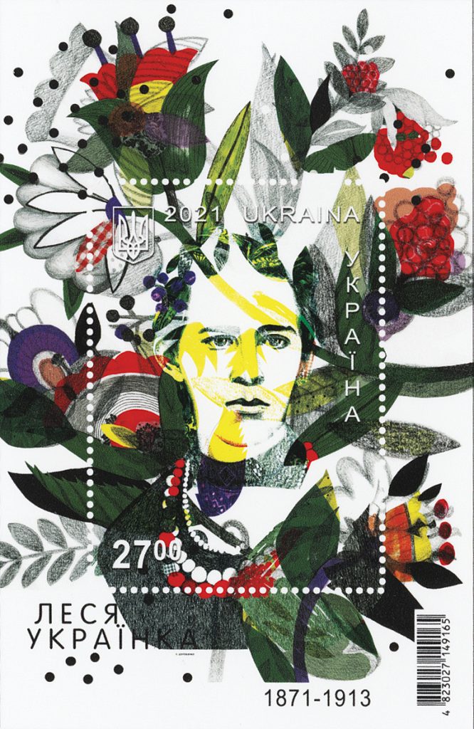 Національний поштовий оператор продовжує експериментувати з новими художніми техніками у філателії. Новий поштовий блок виконаний художницею та ілюстраторкою Поліною Дорошенко. Ця її робота створена в рамках арт-проєкту «Діячі України», в якому молоді художники сучасною графічною мовою передають характери відомих особистостей. У роботі художниця поєднує різні техніки, найчастіше використовує для робіт акрил, ручку, декупаж та італійський олівець.