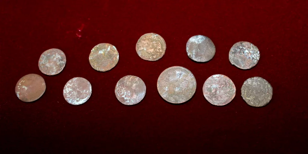Більшу частину нумізматичного скарбу складають «боратинки» – мідні розмінні монети шелягів Речі Посполитої, що перебували в обігу під час правління Яна II Казимира Вази в 1660-х роках. Назва монет походить від імені італійця на польській службі Тіта Лівія Боратіні, який створив проєкт легких мідних шелягів.