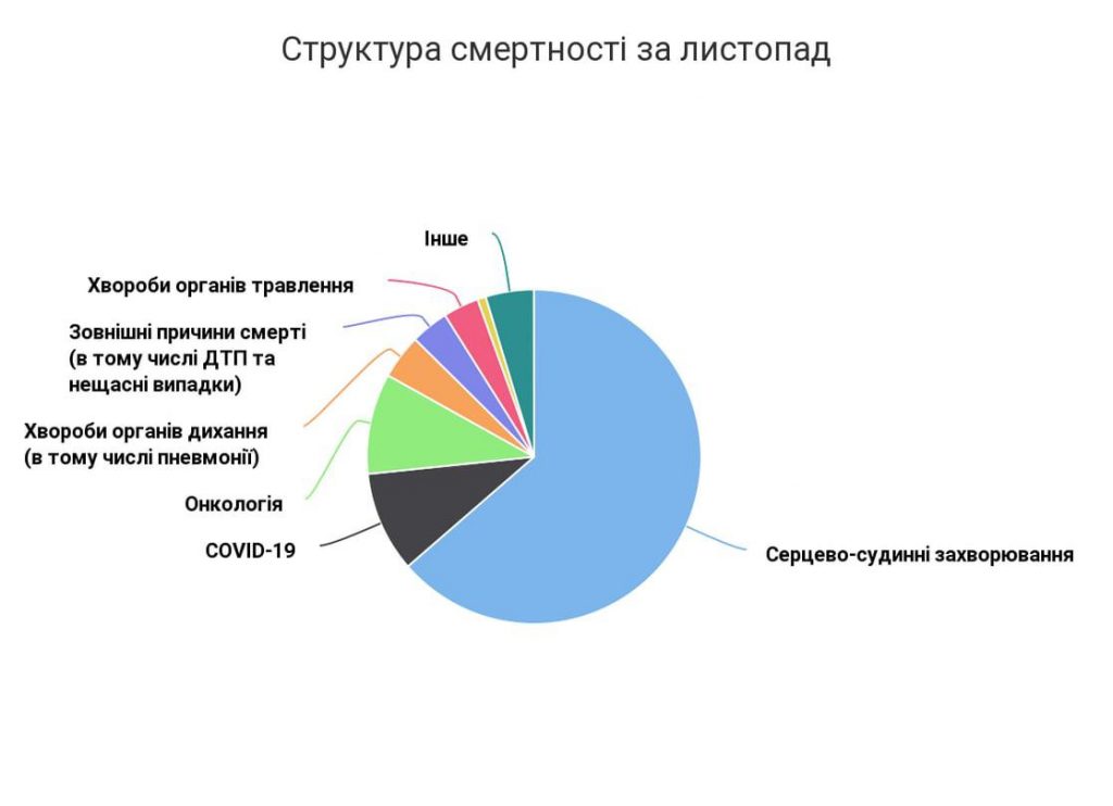 Переважна більшість смертей в листопаді (понад 40 тисяч) були викликані серцево-судинними захворюваннями.
