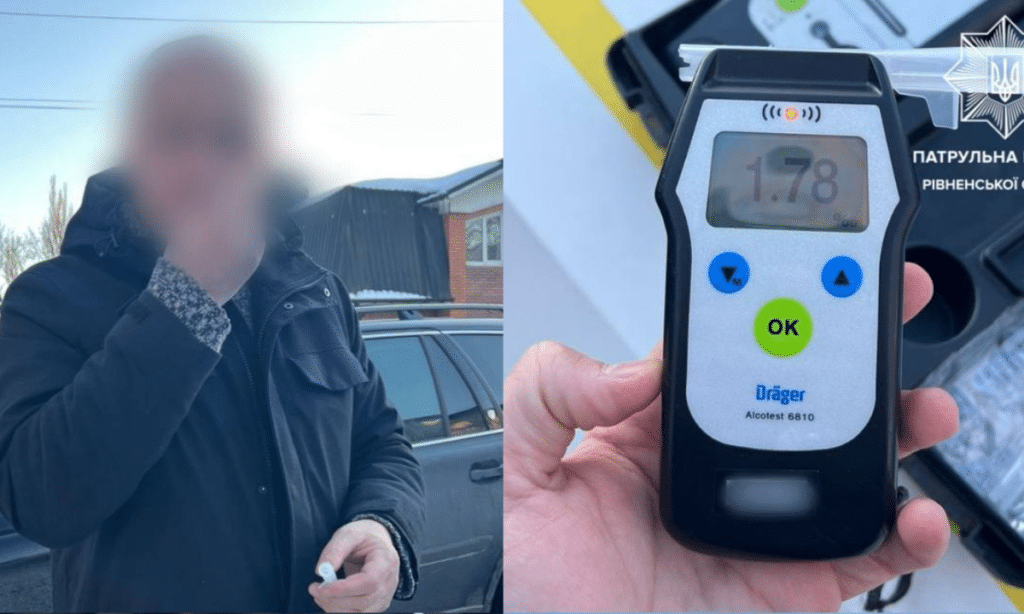 У Рівному на вулиці Дворецькій патрульні зупинили автомобіль Volvo за порушення правил дорожнього руху. Під час перевірки у 57-річного водія виявили ознаки алкогольного сп’яніння. Огляд за допомогою алкотестера показав 1,78 проміле. Крім того, інспектори встановили, що номерний знак не належить цьому транспортному засобу.