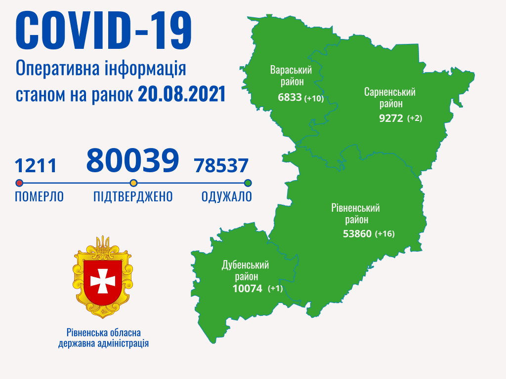Таким чином в Рівненській області наразі маємо 80 039 випадків захворювання на коронавірусну хворобу.