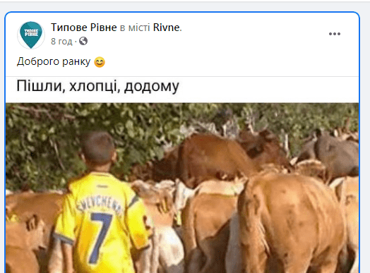 Після програшу збірної України на Євро 2021 в одній з Рівненських груп розмістили жартівливе фото.
