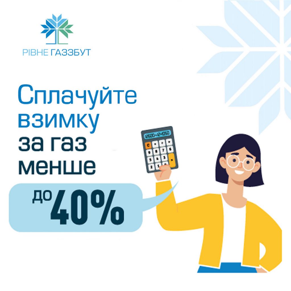 Щоб допомогти споживачам уникнути боргів за блакитне паливо та надмірного фінансового навантаження взимку, ТОВ “РІВНЕГАЗ ЗБУТ” пропонує тариф “Твій газ Рівномірний платіж”. Він дозволить спланувати свої витрати та упродовж року (на період дії тарифу) рівними частинами сплачувати за спожитий газ.