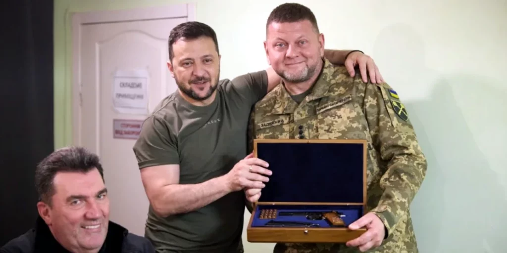 Президент України Володимир Зеленський під час поїздки до Дніпра нагородив головнокомандувача ЗСУ Валерія Залужного іменним пістолетом.