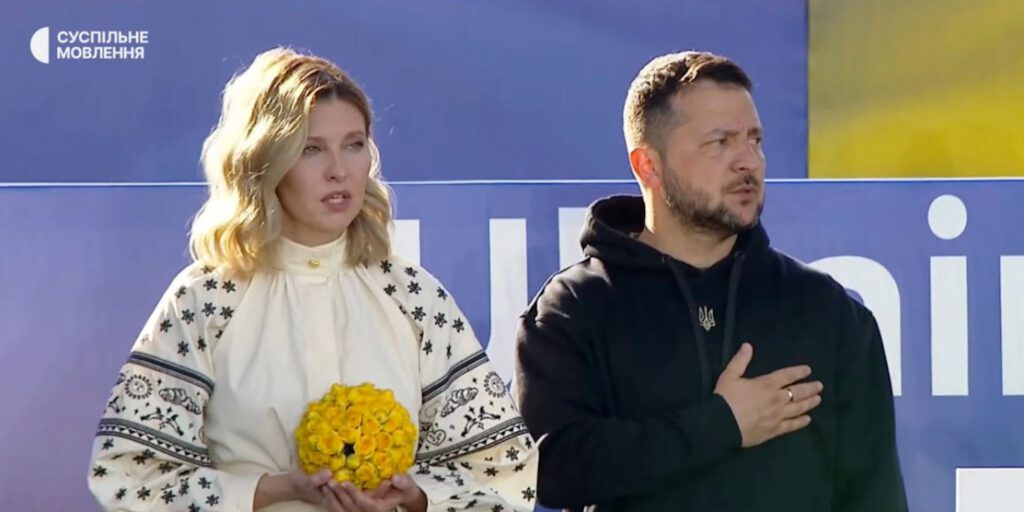 Після того, як президент закінчив промову, люди скандували: “Україна!”