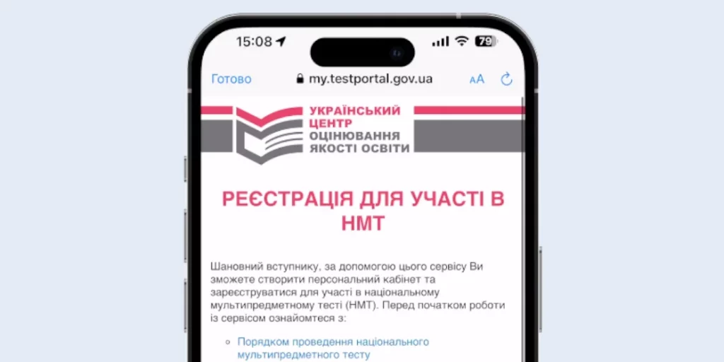 - Крок 1: На сторінці спеціального сервісу «Реєстрація для участі в НМТ» після ознайомлення із запропонованим документами потрібно натиснути на кнопку «Розпочати реєстрацію».